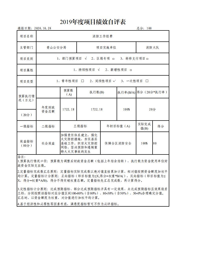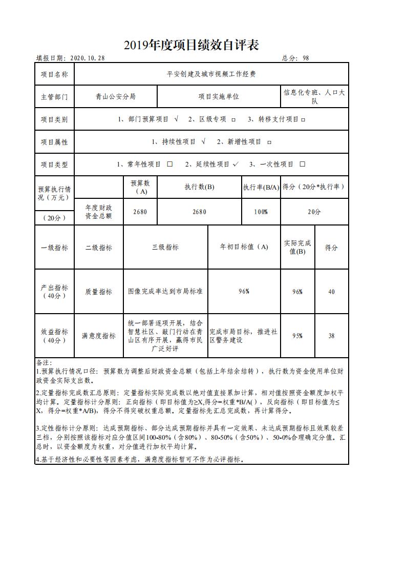 项目绩效自评表(青山分局)