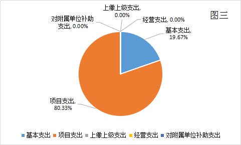 2019年度本年支出合计4,200.51万元。其中:基本支出826.23万元,占本年支出19.7%;项目支出3,374.28万元,占本年支出80.3%;上缴上级支出0.00万元,占本年支出0.0%;经营支出0.00万元,占本年支出0.0%;对附属单位补助支出0.00万元,占本年支出0.0%。