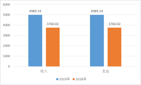 2019年度收、支总计4,989.34万元。与2018年相比,收、支总计各增加(减少) 1,229.32万元,增长32.69%,主要原因是2019年事业人员进养老导致人员支出增加,新增二次供水项目经费,军运会环境整治经费。