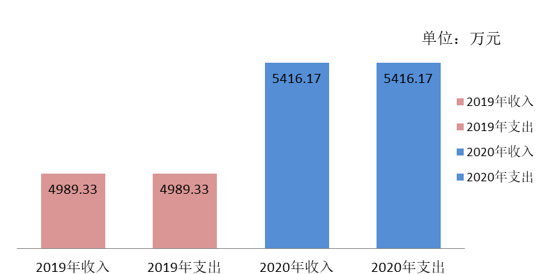 2020年度收、支总计5,416.17万元。与2019年度相比,收、支总计增加426.83万元,增长8.55%,主要原因基本支出增加52.89万元,项目支出增加373.95万元。